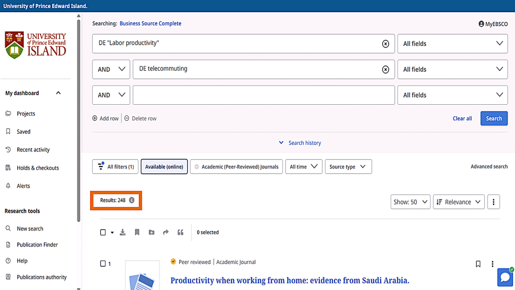 If you need more help, AskUs at the service desk, phone us at (902)-566-0583, send an email to reference@upei.ca, or use the chat tool on the library website.