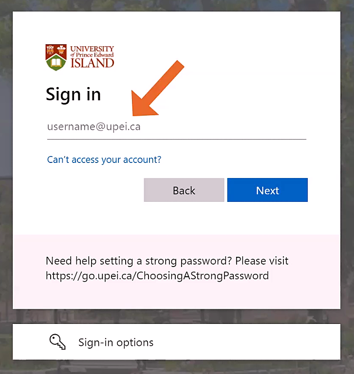 If you’re off campus, you will be asked to log in. Use your UPEI username and password to log in. This is the same username and password that you would use to access Moodle or your UPEI email.