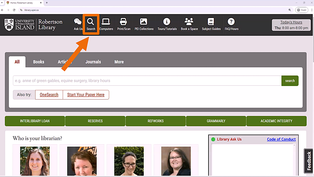 If you need more help, ask us at the service desk, phone us at (902)-566-0583, send an email to reference@upei.ca, or use the chat tool on the library website.