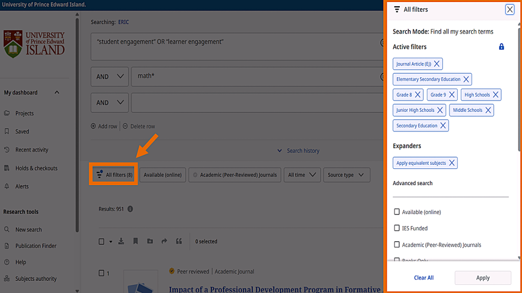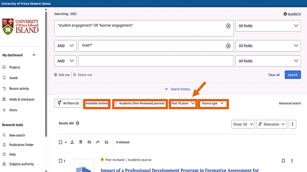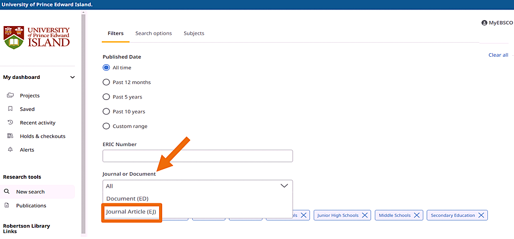 I can use ERIC’s built-in filters to focus on specific levels of education.