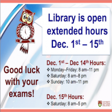 Robertson Library will be open the following hours during the exam period:
