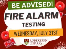 Attention patrons: there will be a test of our fire alarm system Wednesday, July 31st.